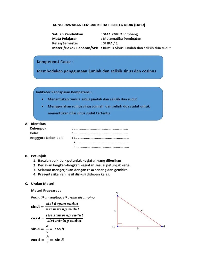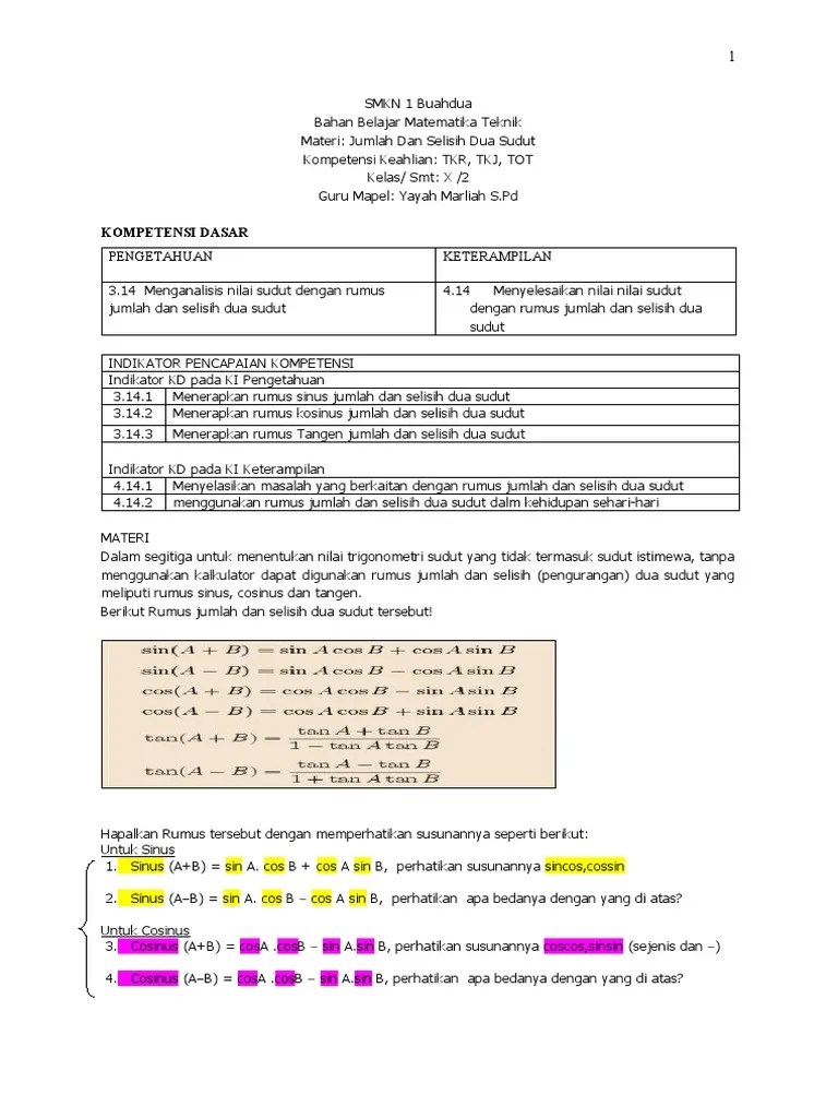Rumus jumlah dan selisih dua sudut. Rumus sin (α + β). Lanjutan dari video mendapatkan rumus trigonometri jumlah dan selisih dua sudut, semoga bermanfaat khususnya untuk guru matematika dan . Topik yang dibahas penggunaan rumus jumlah dan selisih sudut. Dengan menggunakan konsep jumlah dan selisih dua sudut pada trigonometri maka dapat dibuat soal berikut :